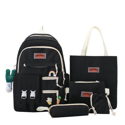 Hot sell 5 pieces set middle school bag and pencil case set college students schoolbag