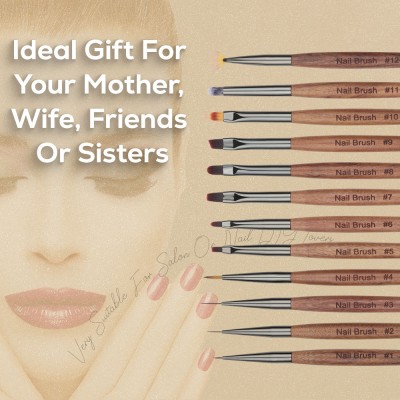 Hechunzi New Arrival 12 Pieces Wood Nail Artist Liner Detail Tools Brushes Painting For Bristles Hair Sandalwood Handle