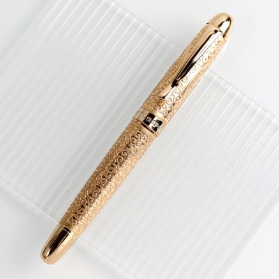 Custom Logo Fancy Golden Fountain Pen Etched Special Pattern Gold Metal Fountain Pen Businessman Pen Office Tools