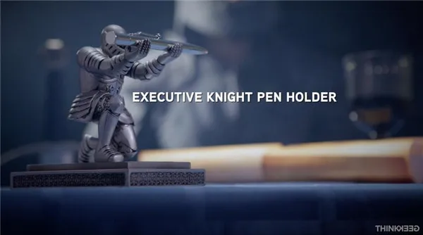 * The pen is mightier than the sword! Skull Knight Pen Holder is a bowing knight, hands raised to hold your most powerful weapon: cool pens.